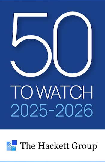 Liste der „50 to Watch“-Beschaffungsdienstleister 2025–2026 von @The Hackett Group aufgenommen wurde.
